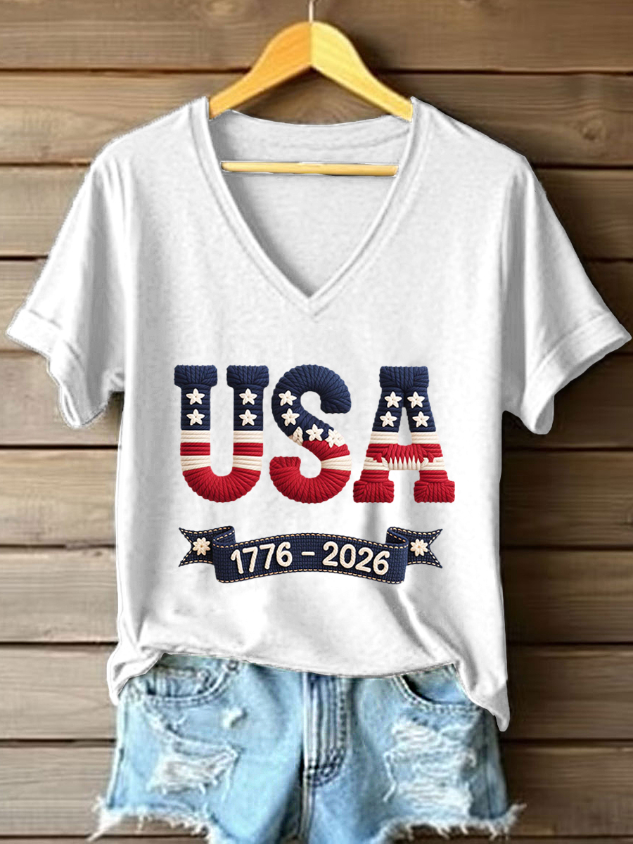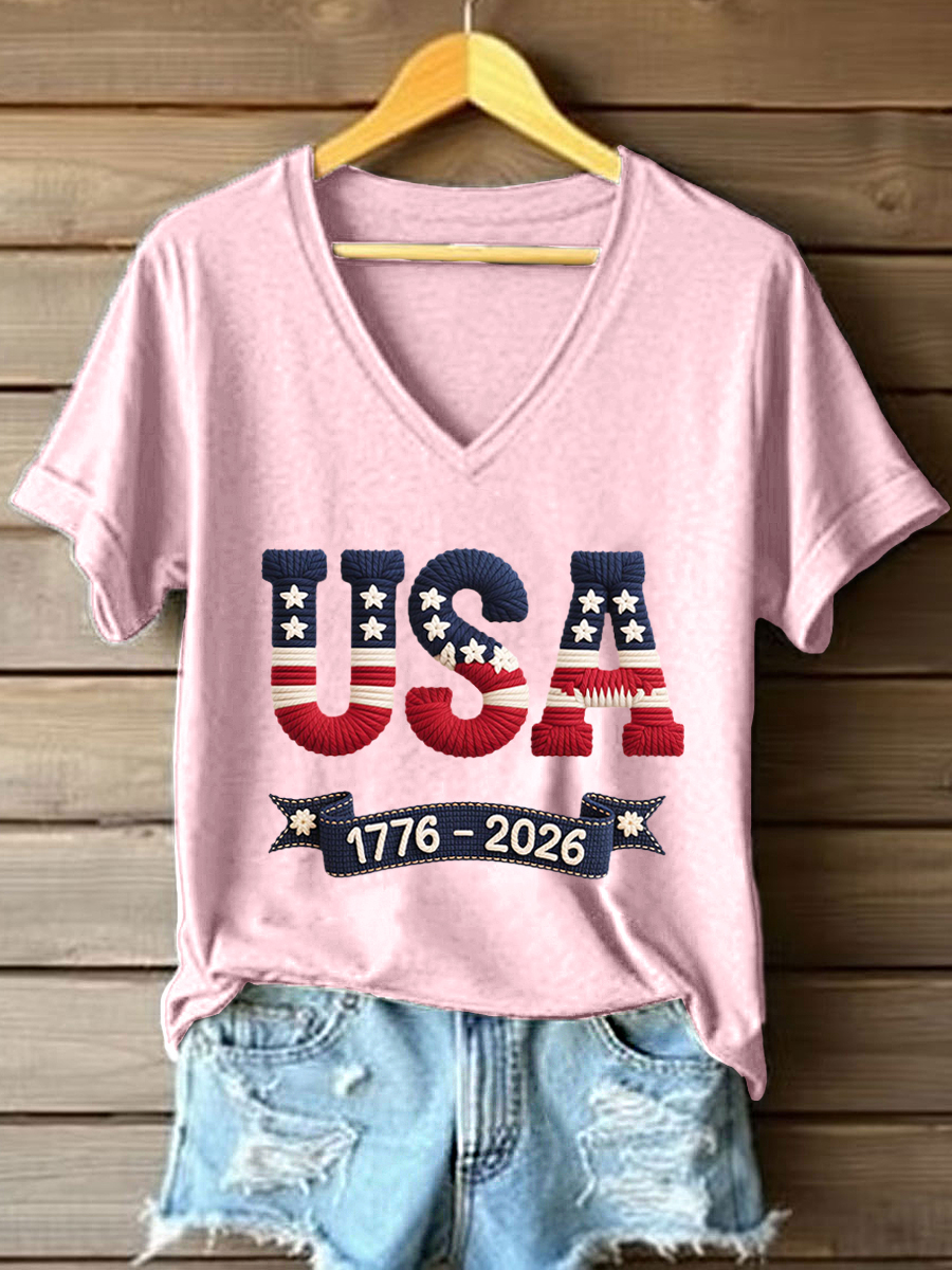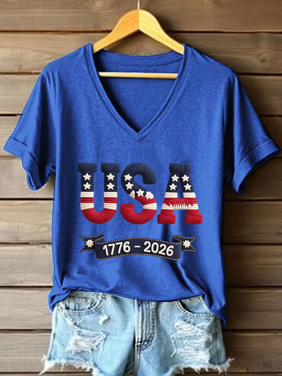 Women's USA 1776-2026 Print V-Neck T-Shirt